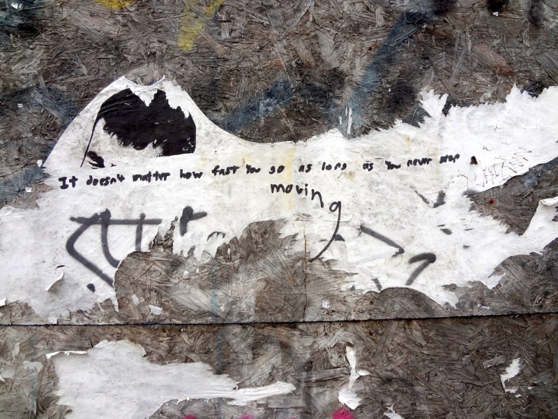 Words of wisdom and words of profanity, scribbled, carved and spray-painted on the walls, doors, scaffoldings and pavements of Wythe Ave.